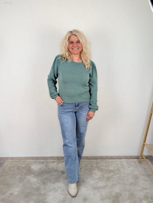 Emilia trui geribbelde mouwen - Zeegroen