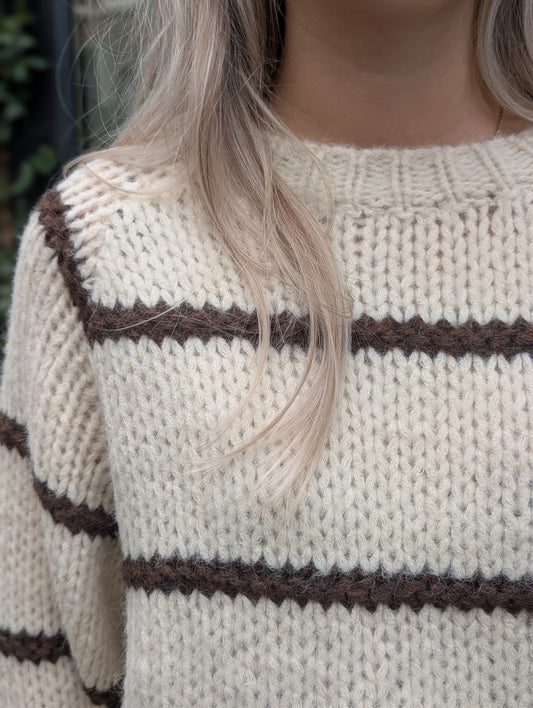 AanbiedingSu streep kabel trui - Creme/ Bruin