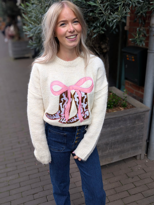 AanbiedingDaan trui met bloem - Ecru/ donker blauw