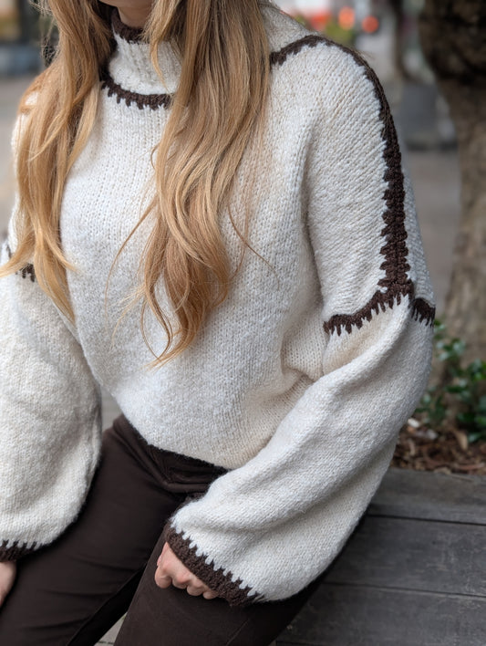Mayke trui met col - Creme/ Bruin