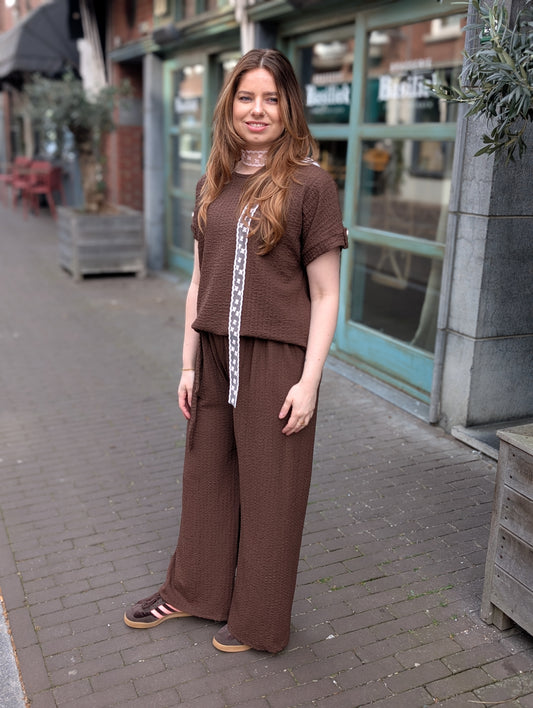Set Claire broek + blouse - Donkerbruin