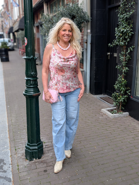 Waterval top bloemenprint - Roze