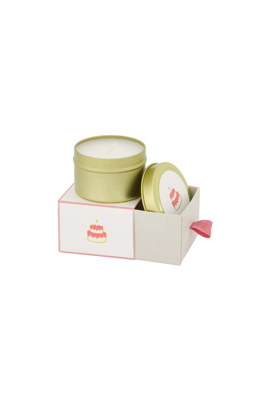 Zusss geurkaars tinnen in schuifdoosje gefeliciteerd taart wit/roze