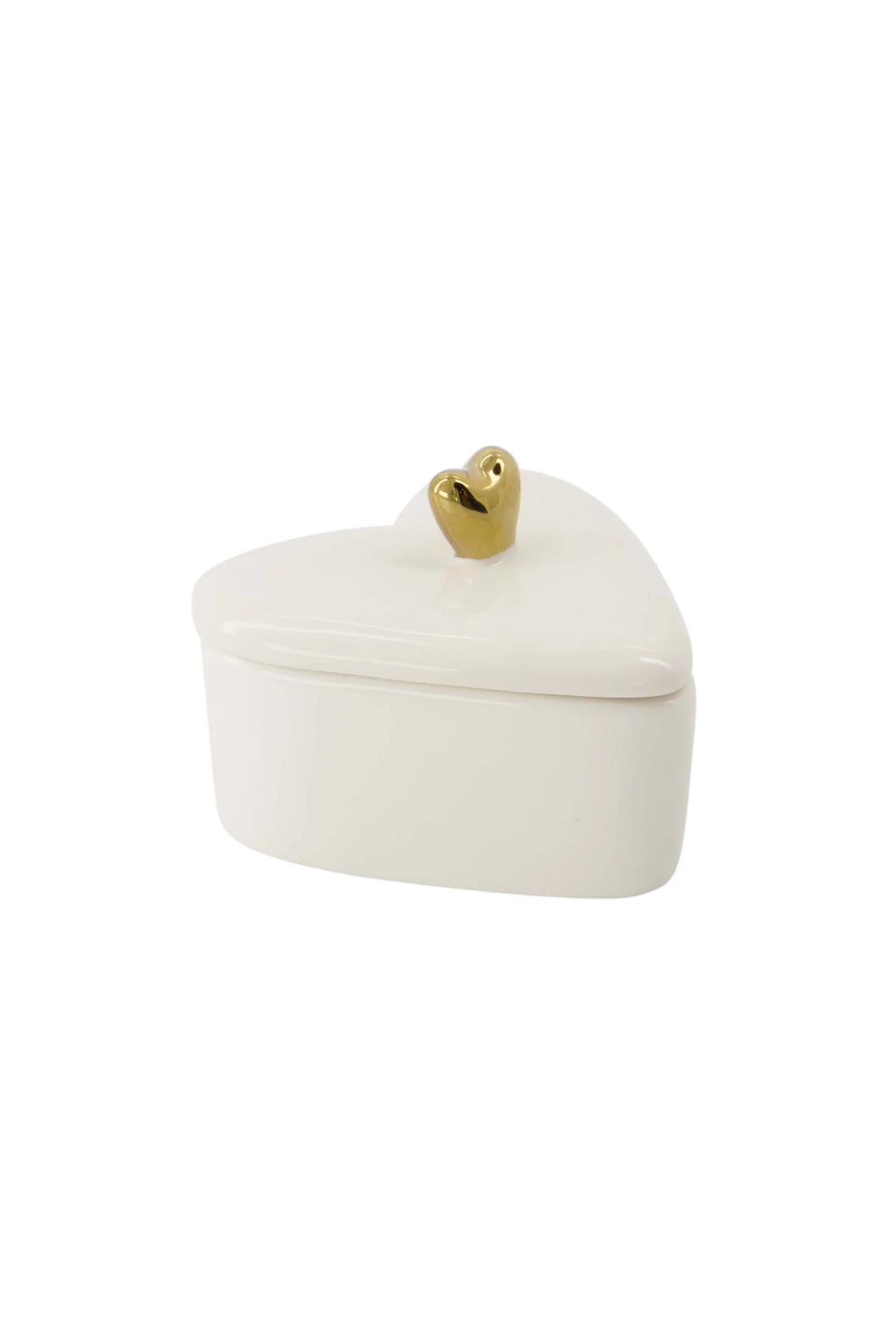 Zusss bewaarpot keramiek hartvorm - Wit/goud