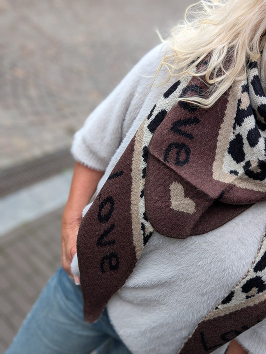 Sold outHartjes sjaal - Bruin/ ecru/ blauw