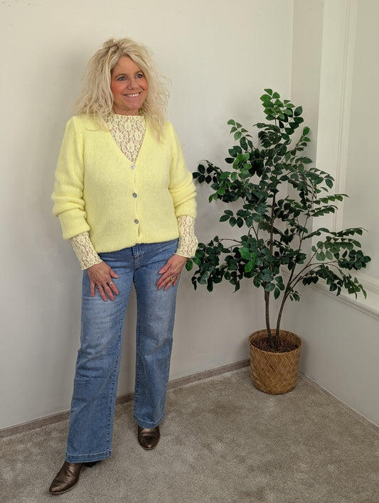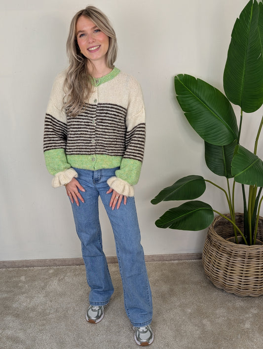 Gestreepte cardigan spencer Tess - Geel/Roze