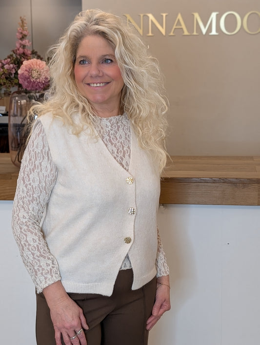 Ajourgebreid Vest met Hartjes knopen - Blauw