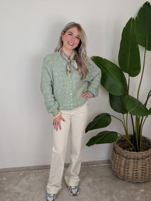 Ajourgebreid Vest met Hartjes knopen - Groen
