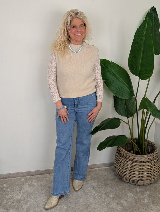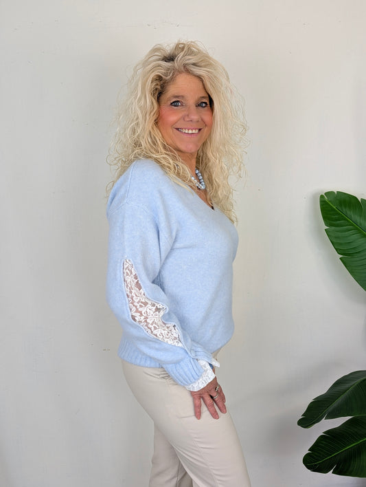 Lens trui met kant - Licht blauw