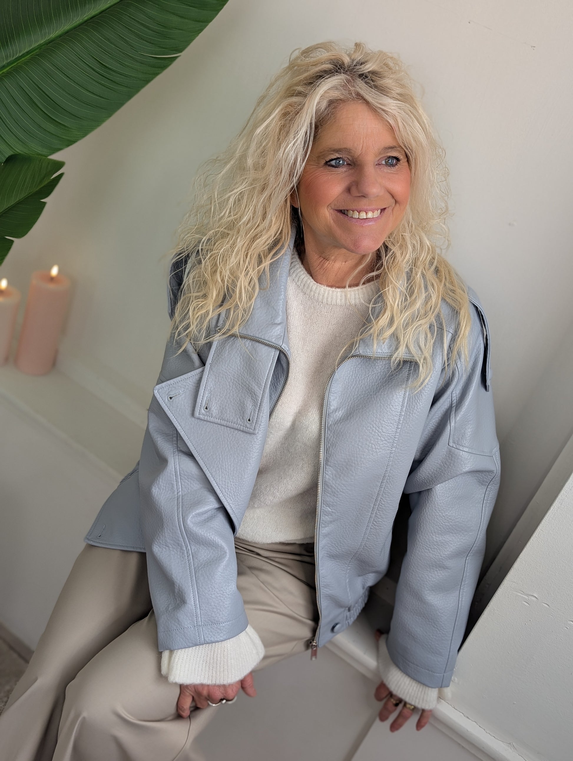 • OMSCHRIJVING: oversized leather look biker jacket, de jas heeft zakken en een ritssluiting. Het jasje heeft een binnenvoering en elastiek aan de onderkant.