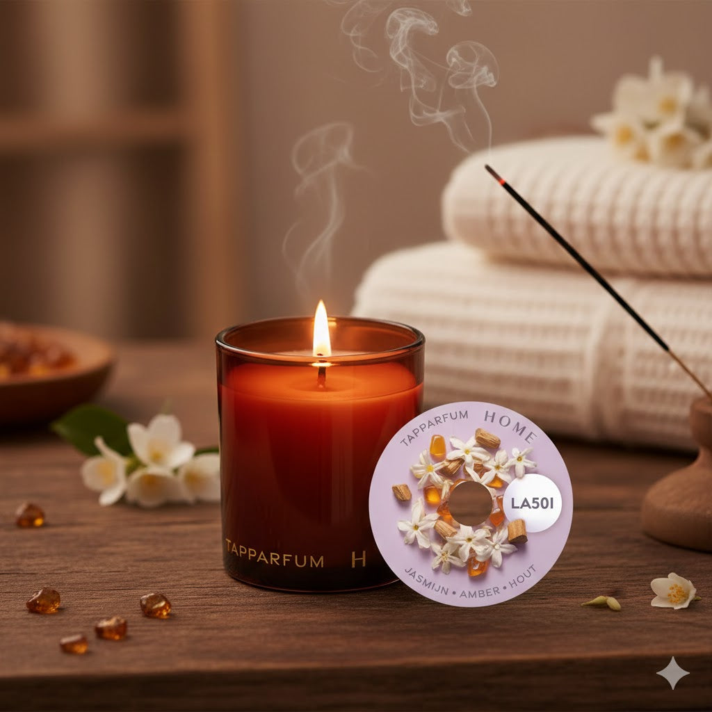 TapParfum HOME Geurkaars LA501 - Jasmijn, Amber & Hout