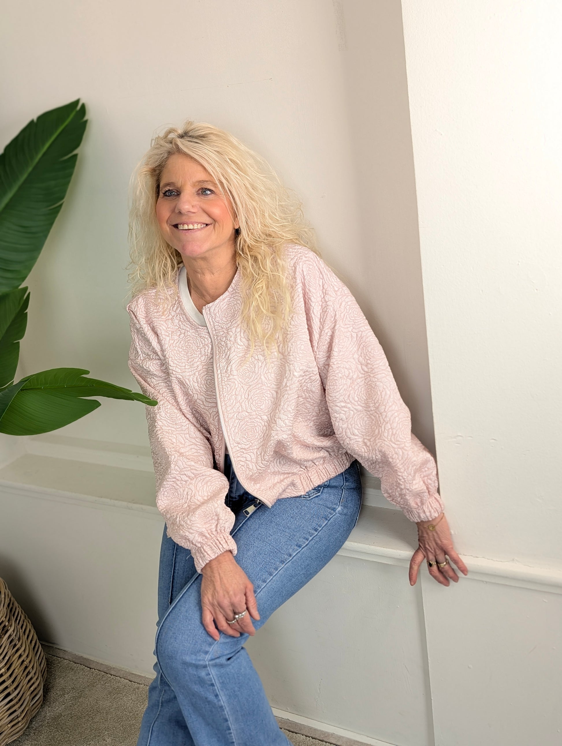 • OMSCHRIJVING: Deze bomber is echt mega gaaf! De kleur is super mooi en gemakkelijk te combineren. En de de bomber heeft een mooie parelmoer glans. De bomber heeft een ritssluiting, steekzakken en is onderin en aan de mouwen afgewerkt met elastiek.