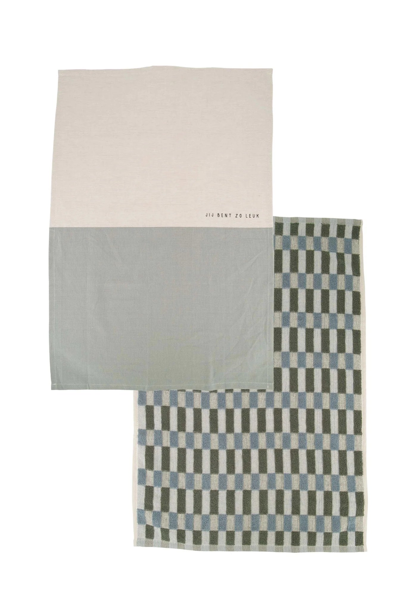 Zusss keukenset jij bent zo leuk grafisch patroon zand/grijs/groen
