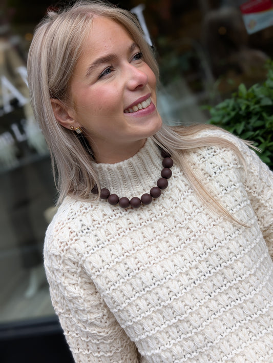 Nana trui met opengewerkte mouw - Off white met ecru kant