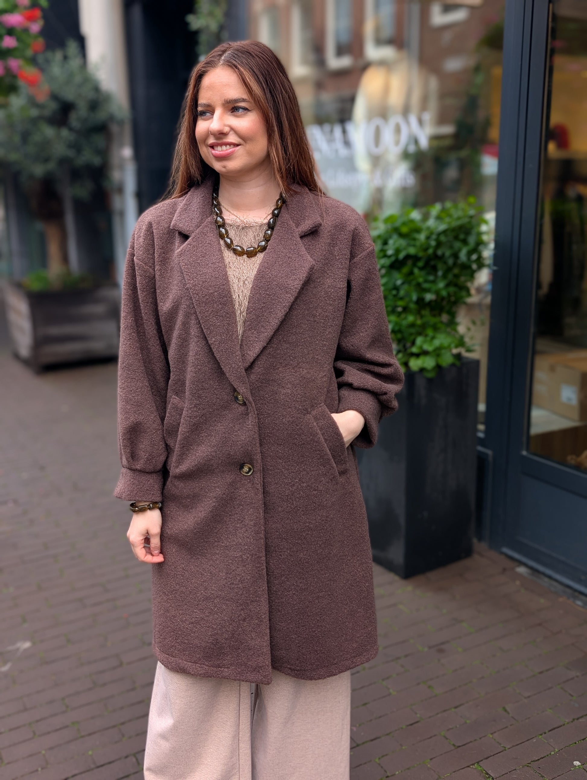 Deze jas is mega leuk en een perfecte tussenjas, of heerlijk warm met een dikke sjaal. De jas heeft een knoopsluiting en steekzakken.