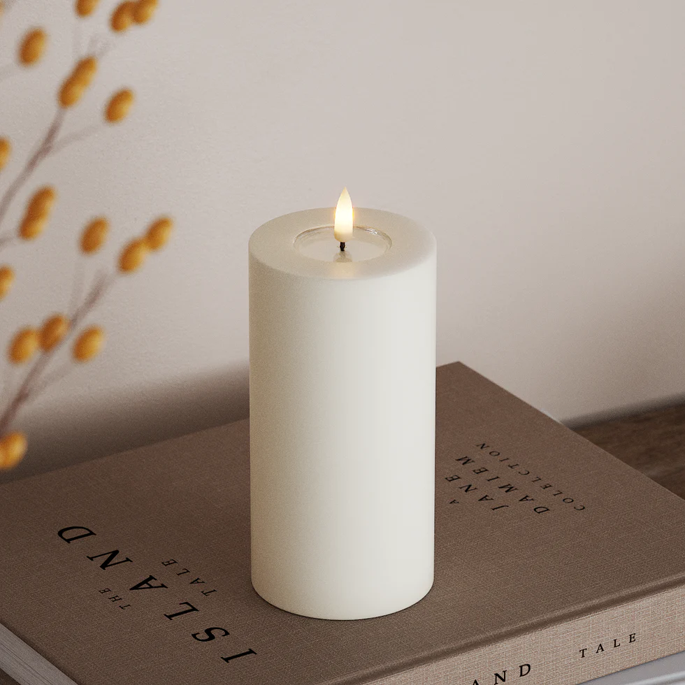 Gebruik Stompkaarsen in kleine groepjes van verschillende hoogtes. Het geeft diepte en een volledige expressie in het interieur.