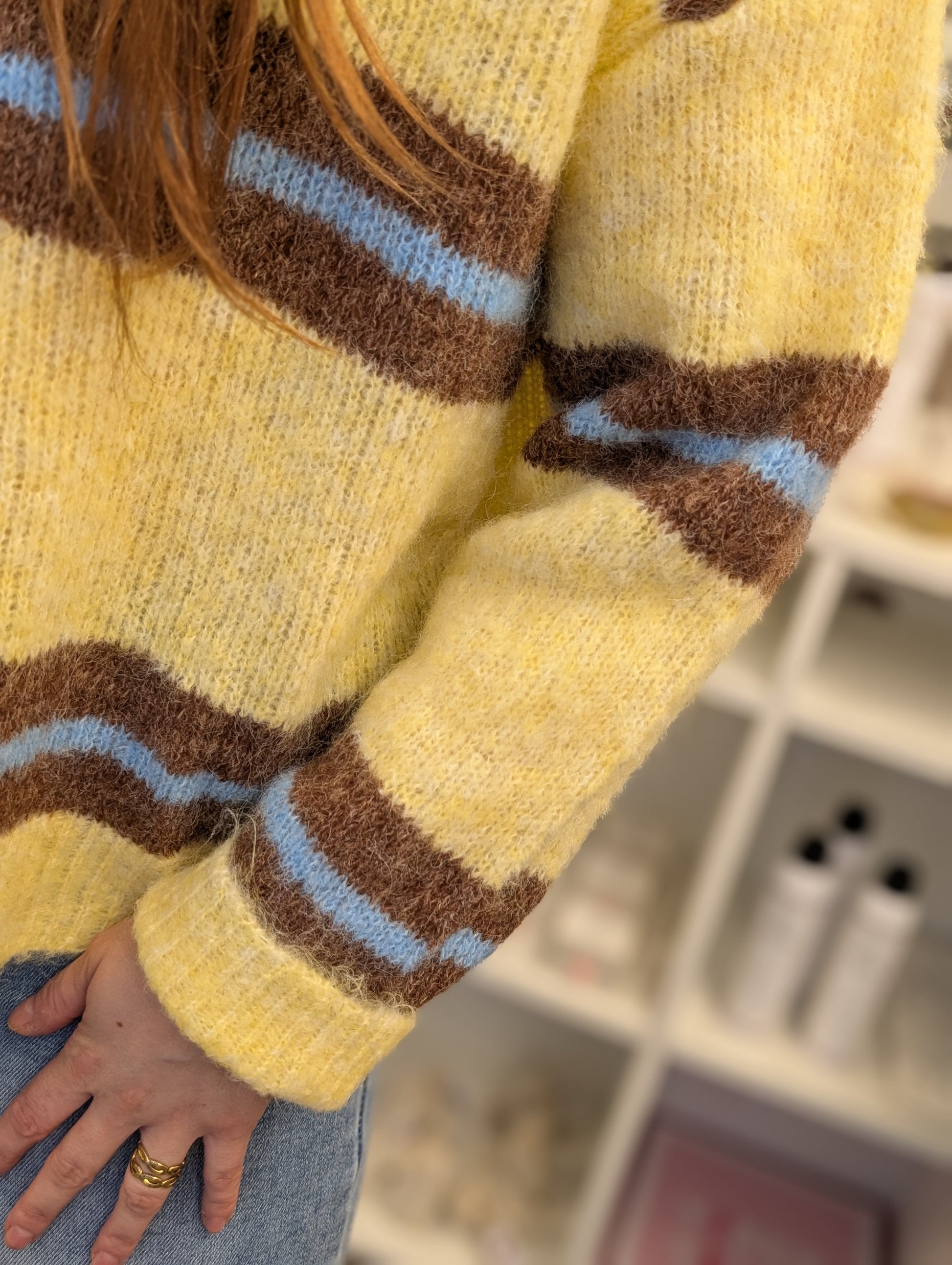 Deze trui is mega leuk! Lekker gebreid stofje maar niet al te dik. Dus ook langer door te dragen.