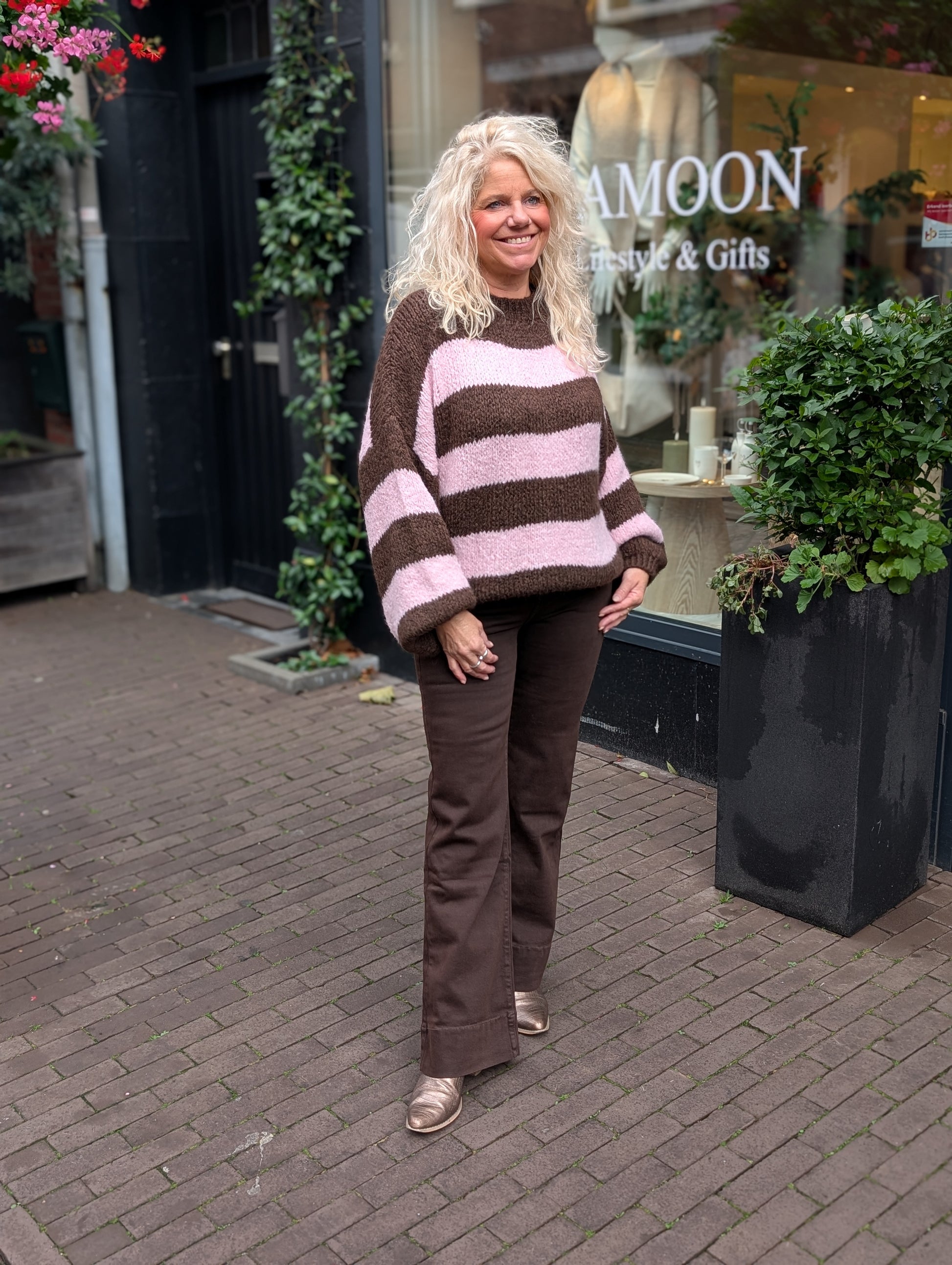 Gestreepte knit Pia - Bruin/Roze