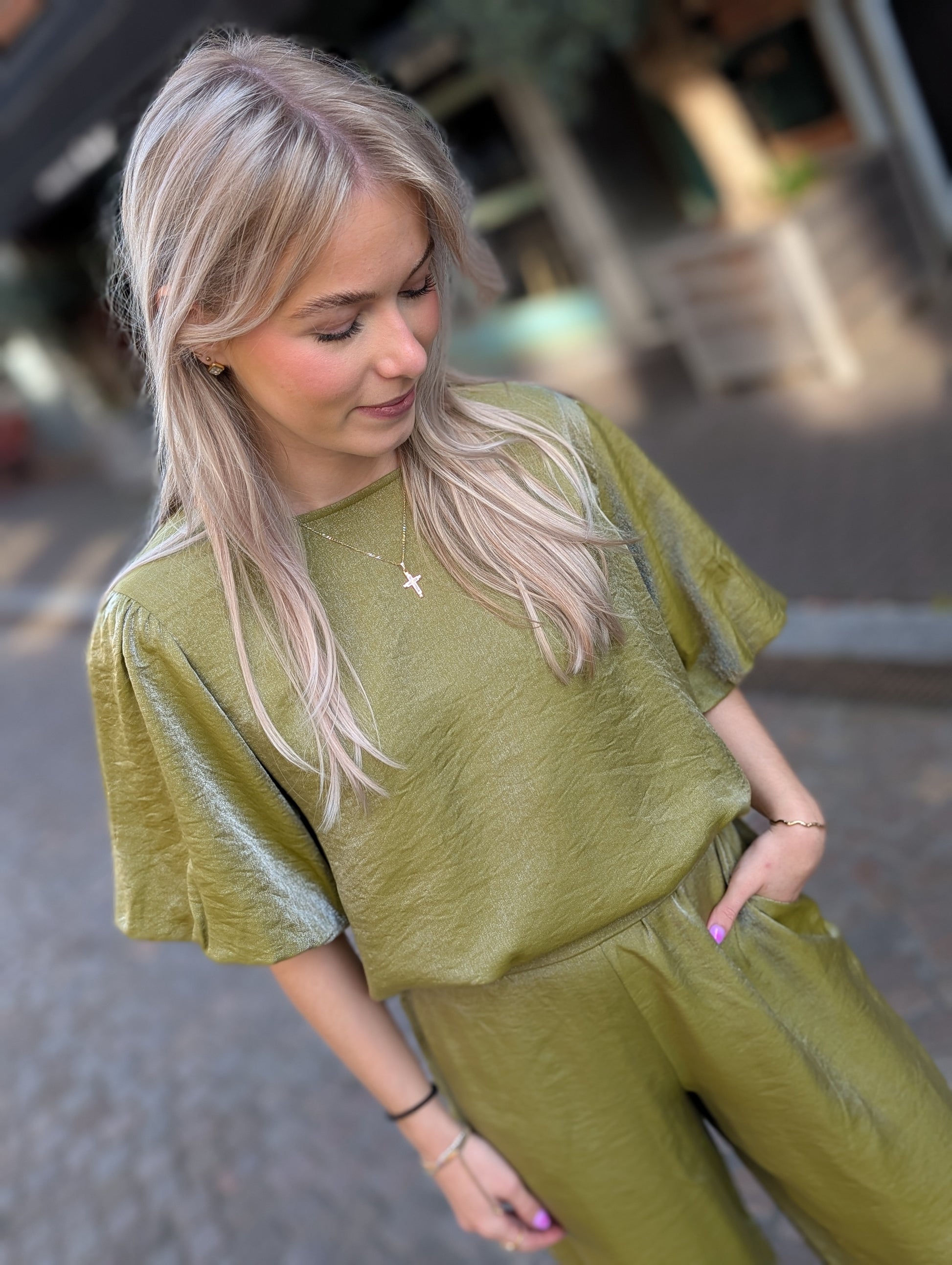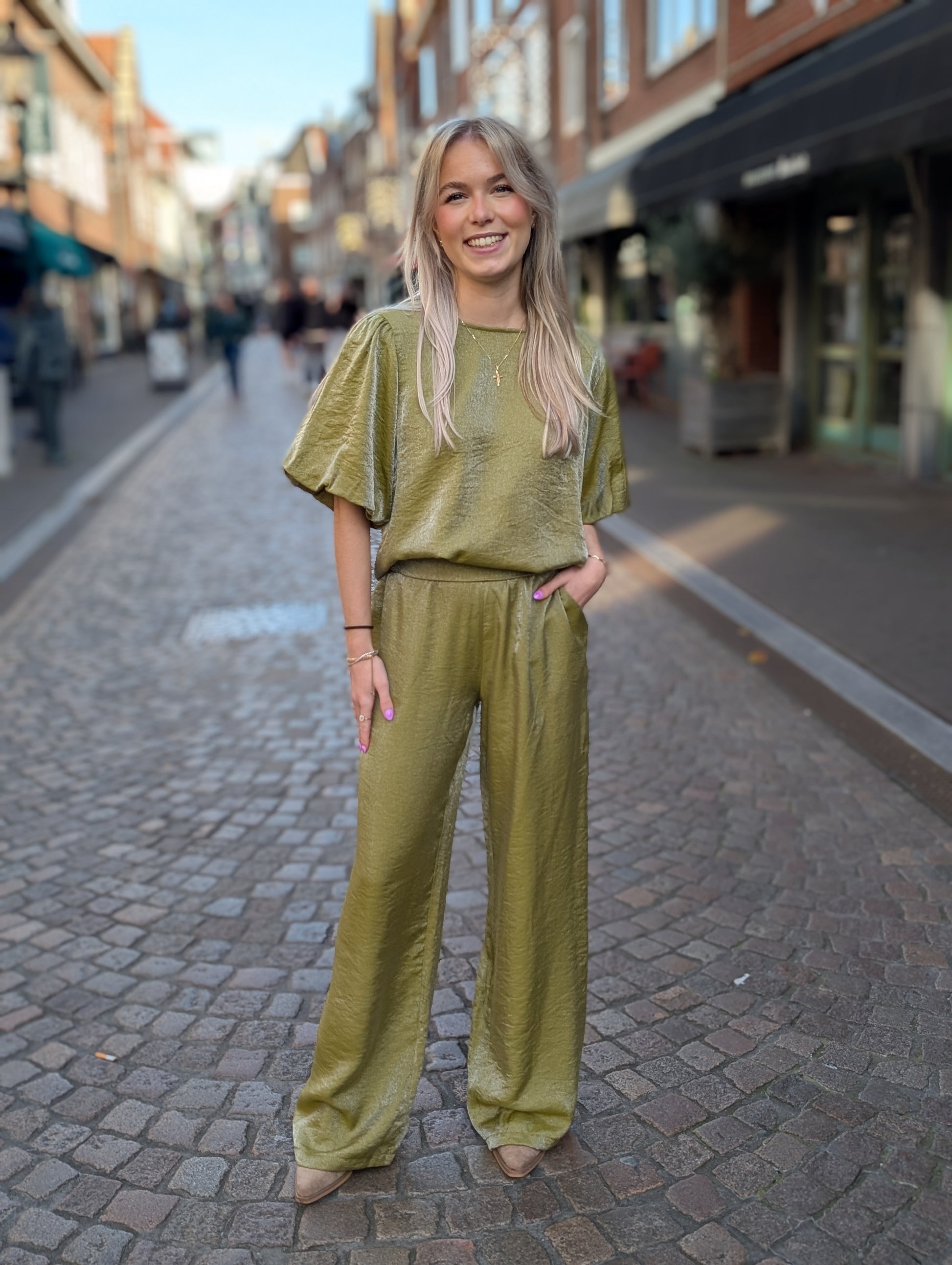 De satijnen top met pofmouw van Zusss is een stijlvolle keuze voor wie graag nét even iets anders draagt. Deze satijnen top valt op door de subtiele glans en de speelse pofmouwen die de look afmaken. De zachte avocado kleur maakt de satijnen top makkelijk te combineren met verschillende outfits. Draag deze satijnen top met je favoriete jeans of rok voor een charmante, verfijnde uitstraling. Met deze satijnen top straal je een natuurlijke elegantie uit, perfect voor diverse gelegenheden.