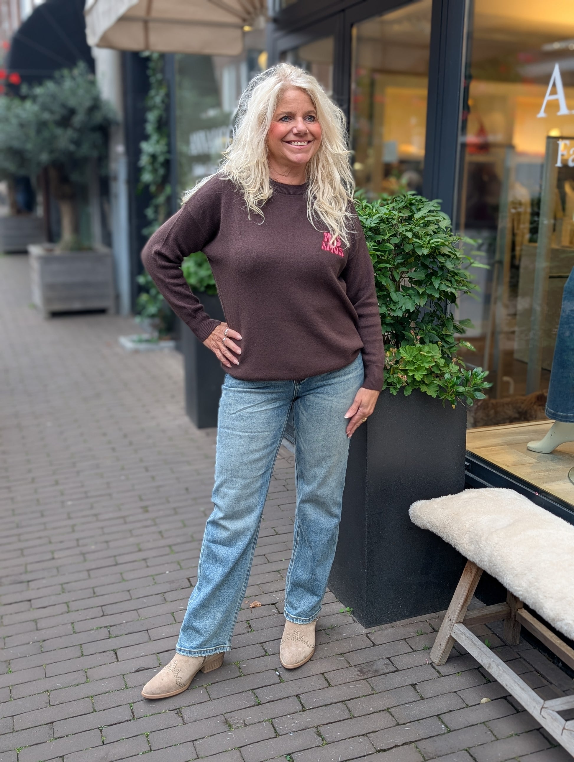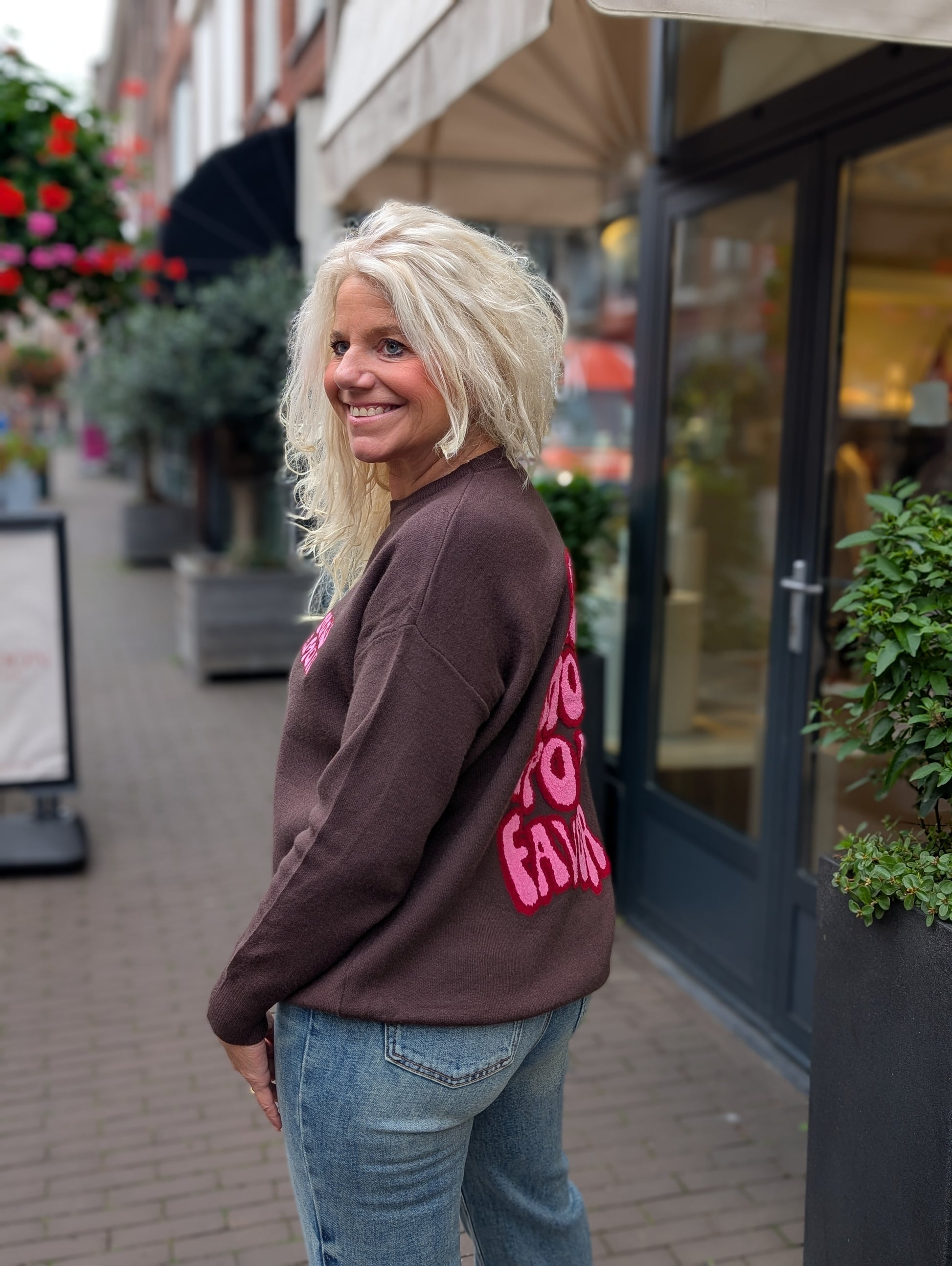 Amor por favor trui - Bruin/Roze