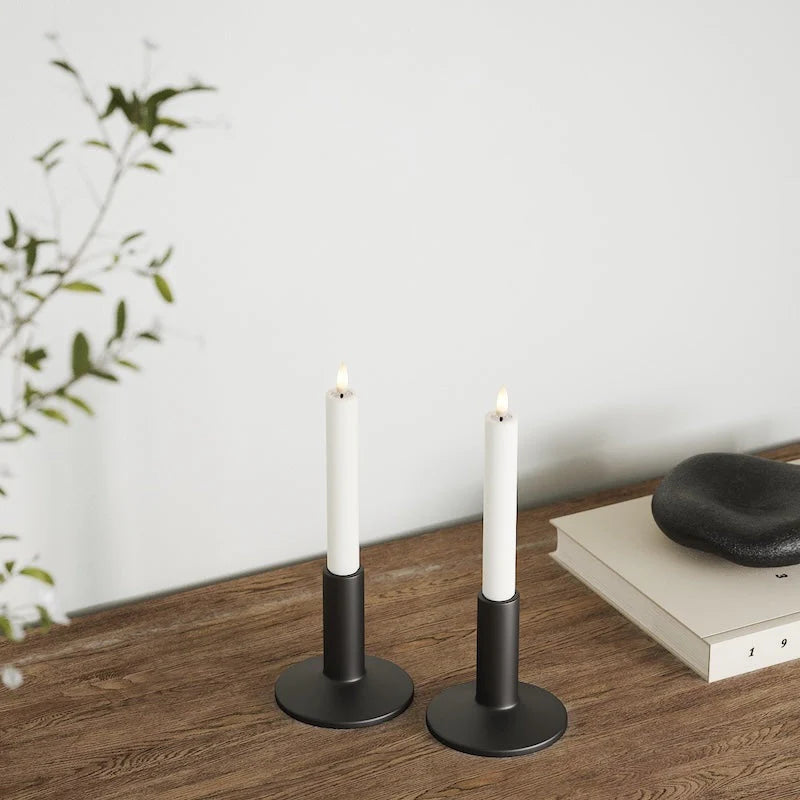 Gemaakt van echte was en hars-top (wetlook). Elke kaars meet Ø 2,0 x 15,0 cm.