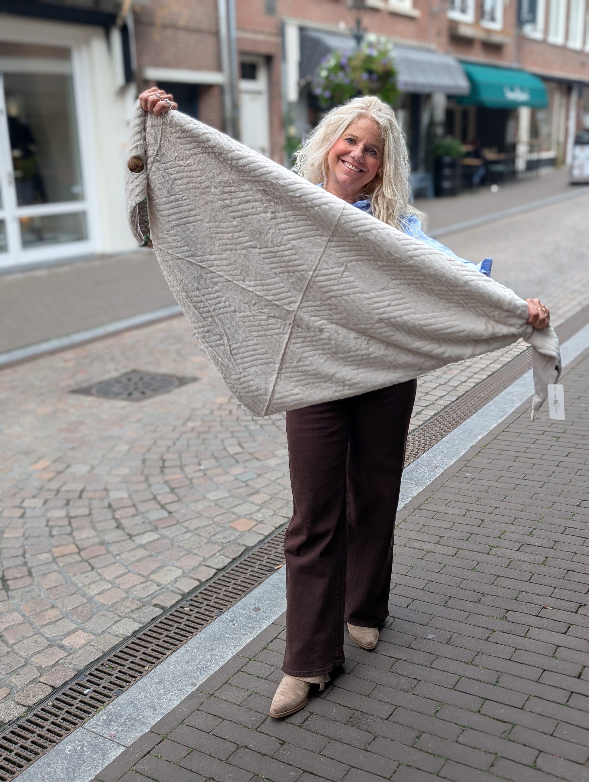 Fluffy punt sjaal met knoop - Ecru