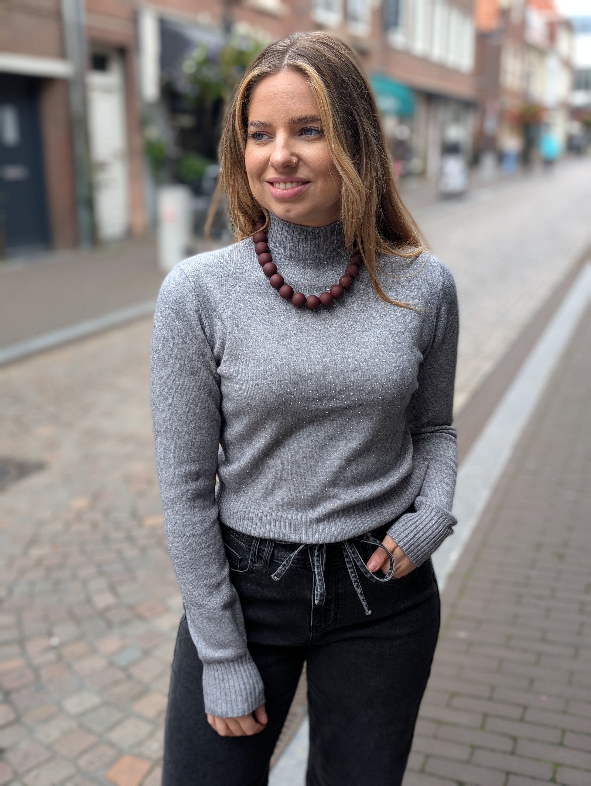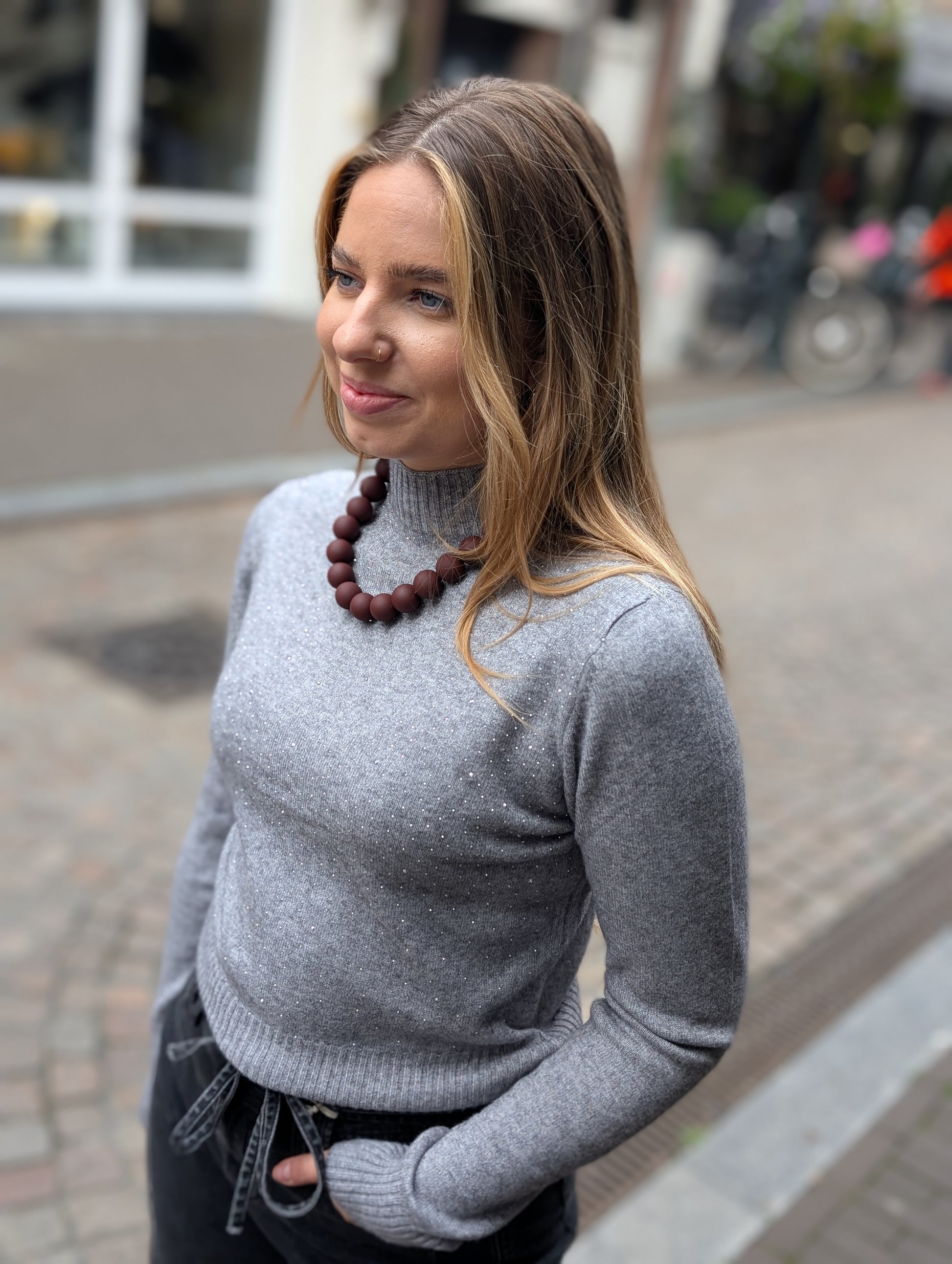 Dit dunne maar lekker warm colletje is net even wat aparter door de leuke glitter steentjes.
