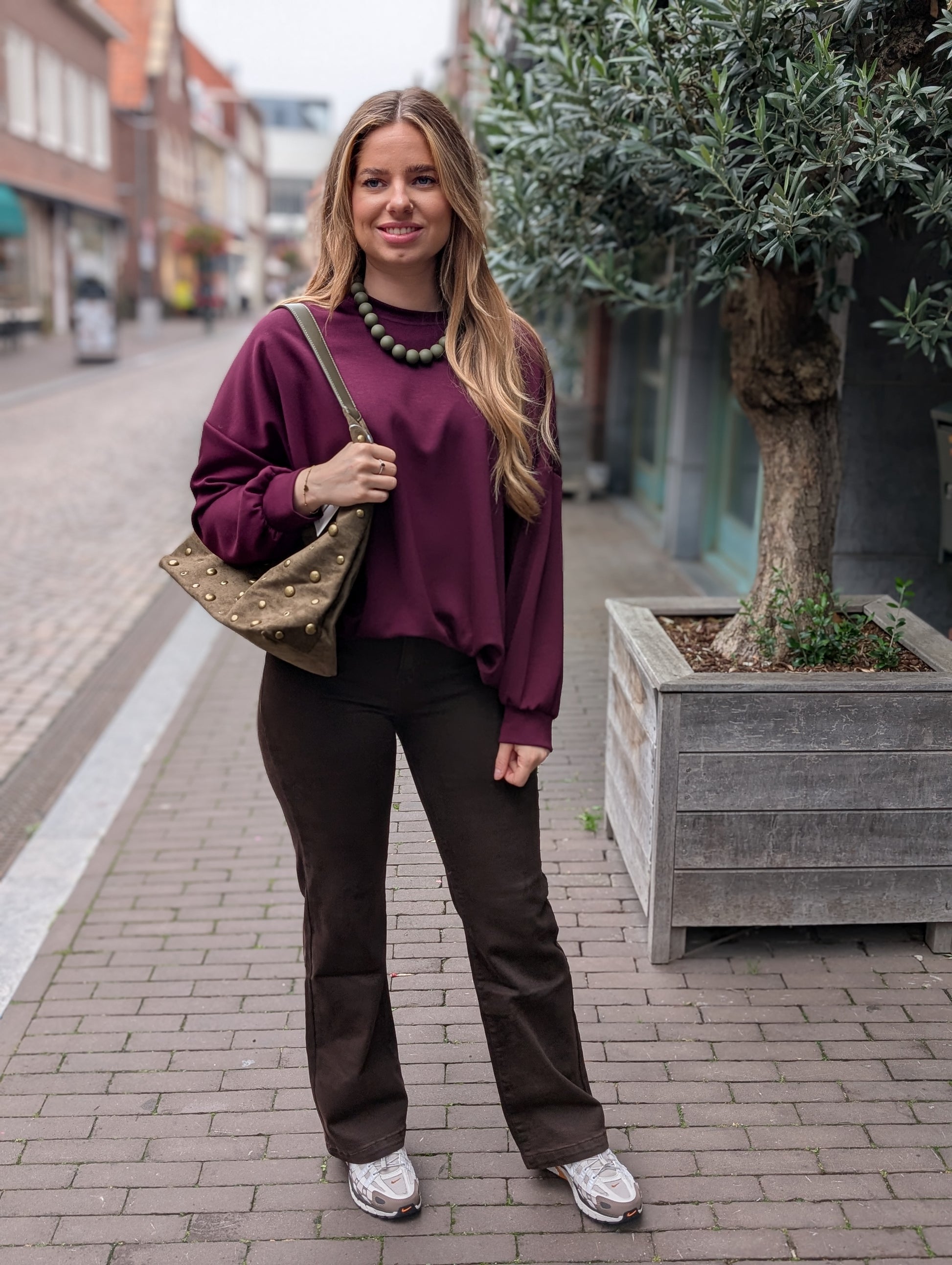 Moise jersey trui met elastiek onderin - Wijn rood