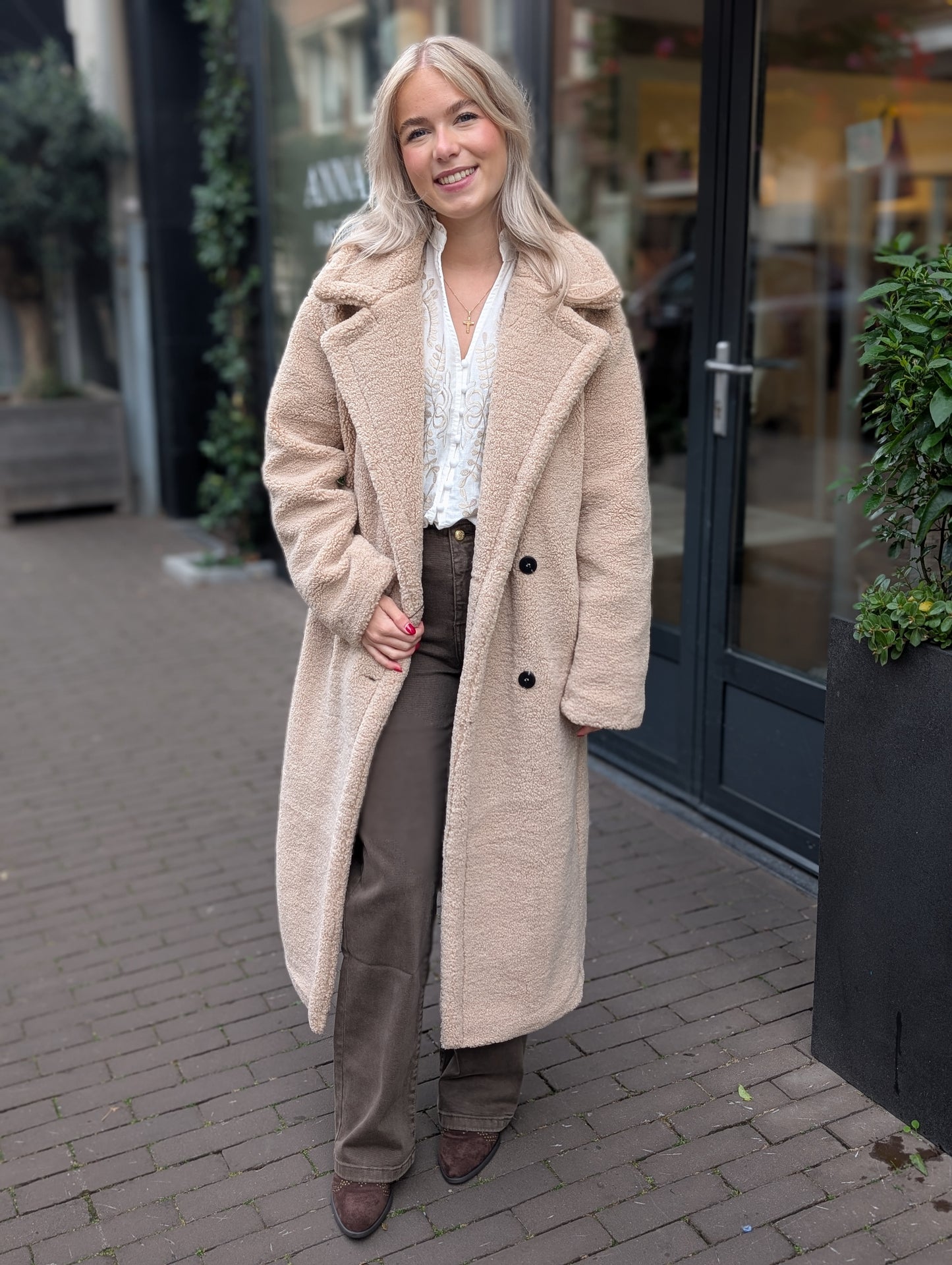 Deze jas is zo leuk! Perfect voor dit najaar. De jas heeft een knoopsluiting en steekzakken.