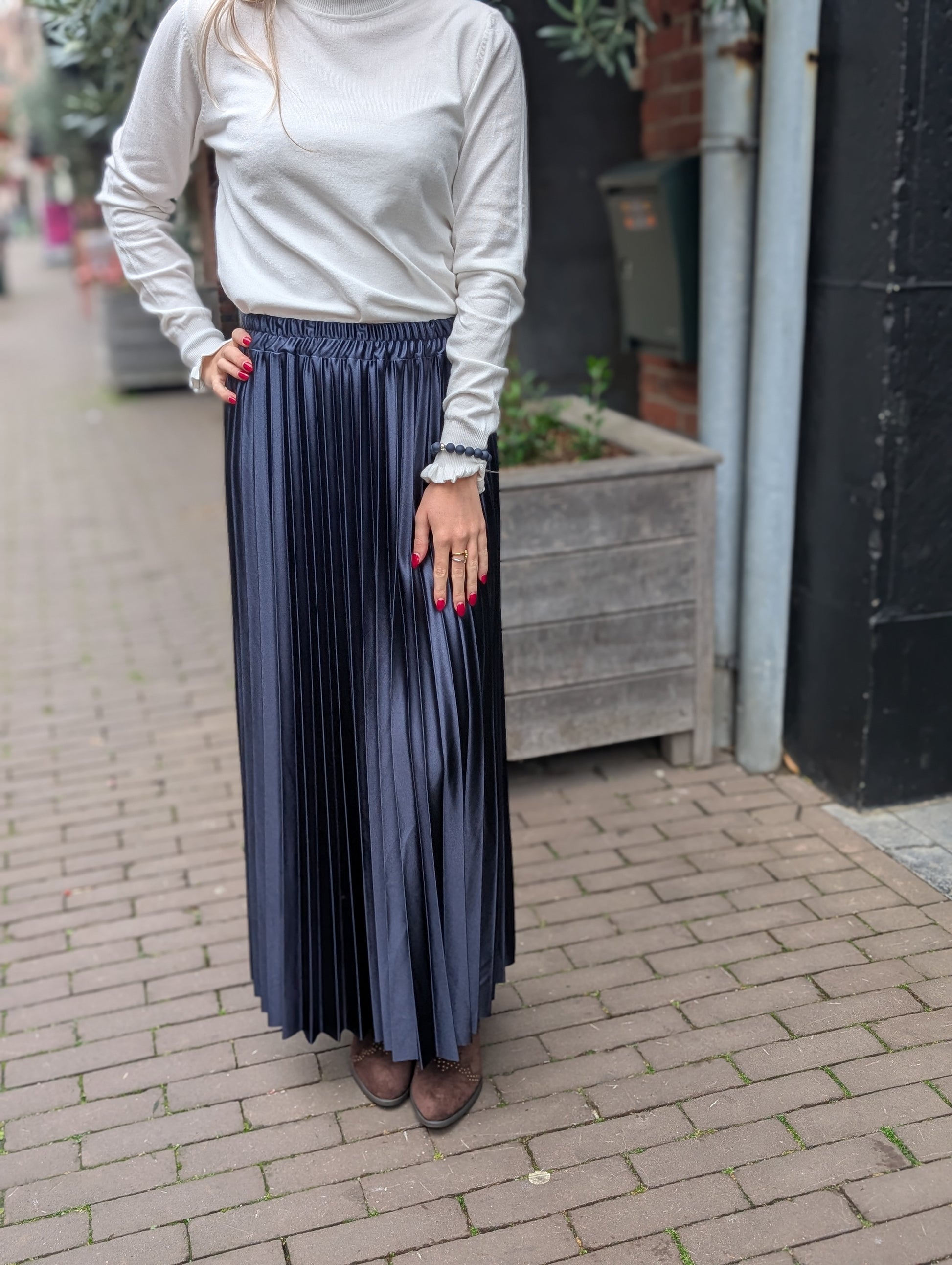 Patty glans plissé rok - Donkerblauw