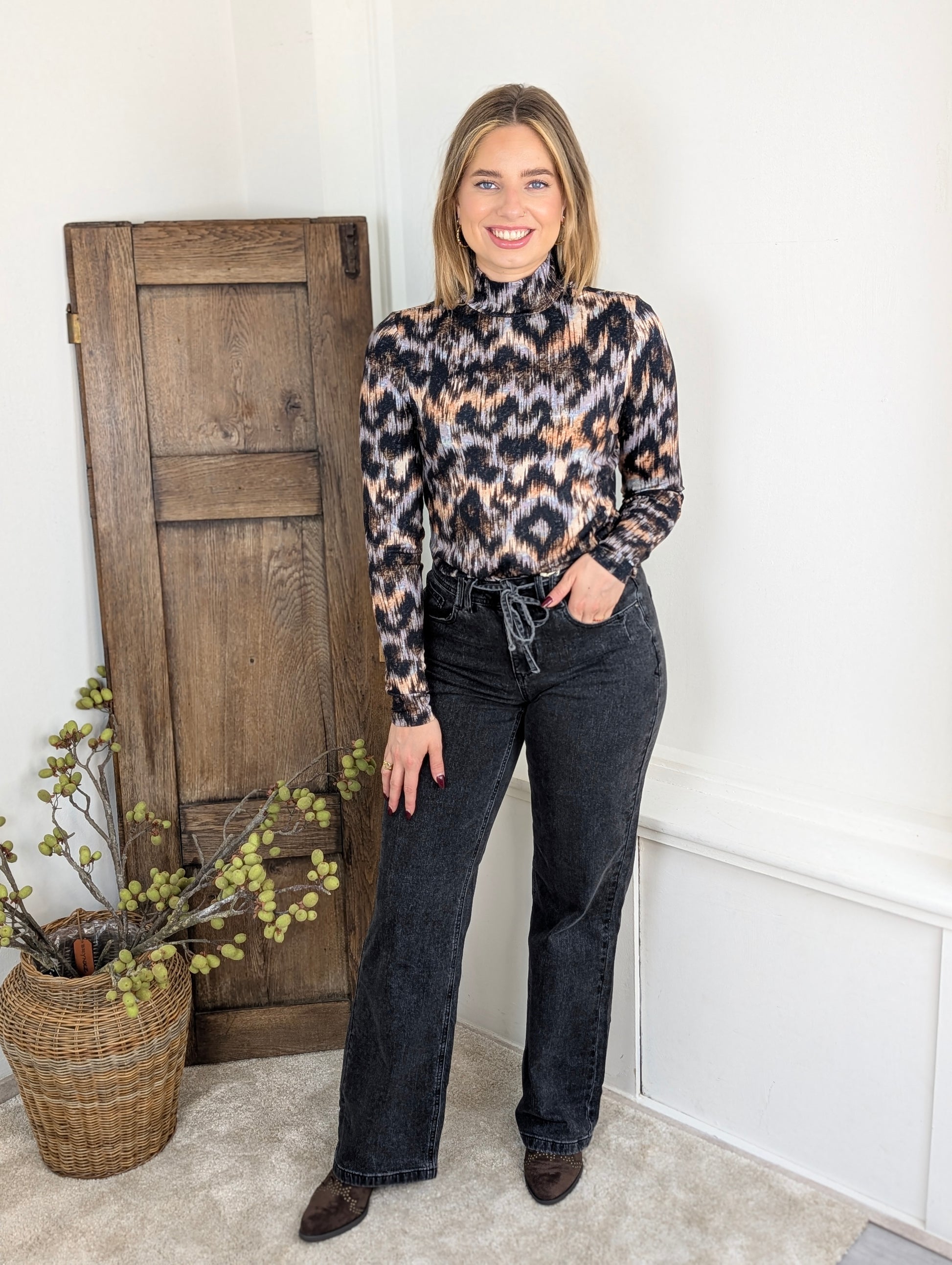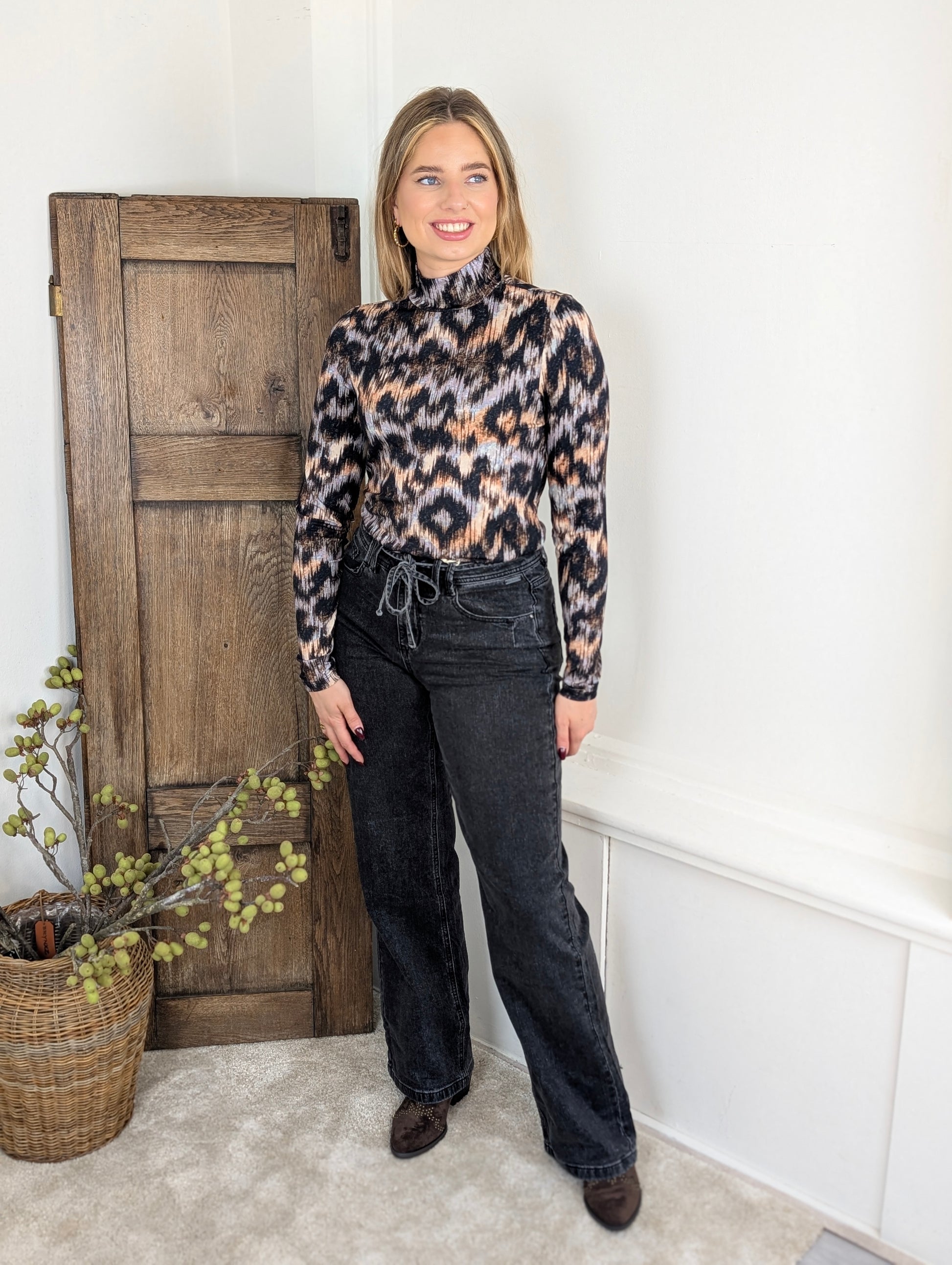 De Rolinde Ethnic Print is een top gemaakt van een fijn breisel. De top heeft lange mouwen, een kol, en een all-over print. Beschikbaar in de kleuren Khaki & mid brown.