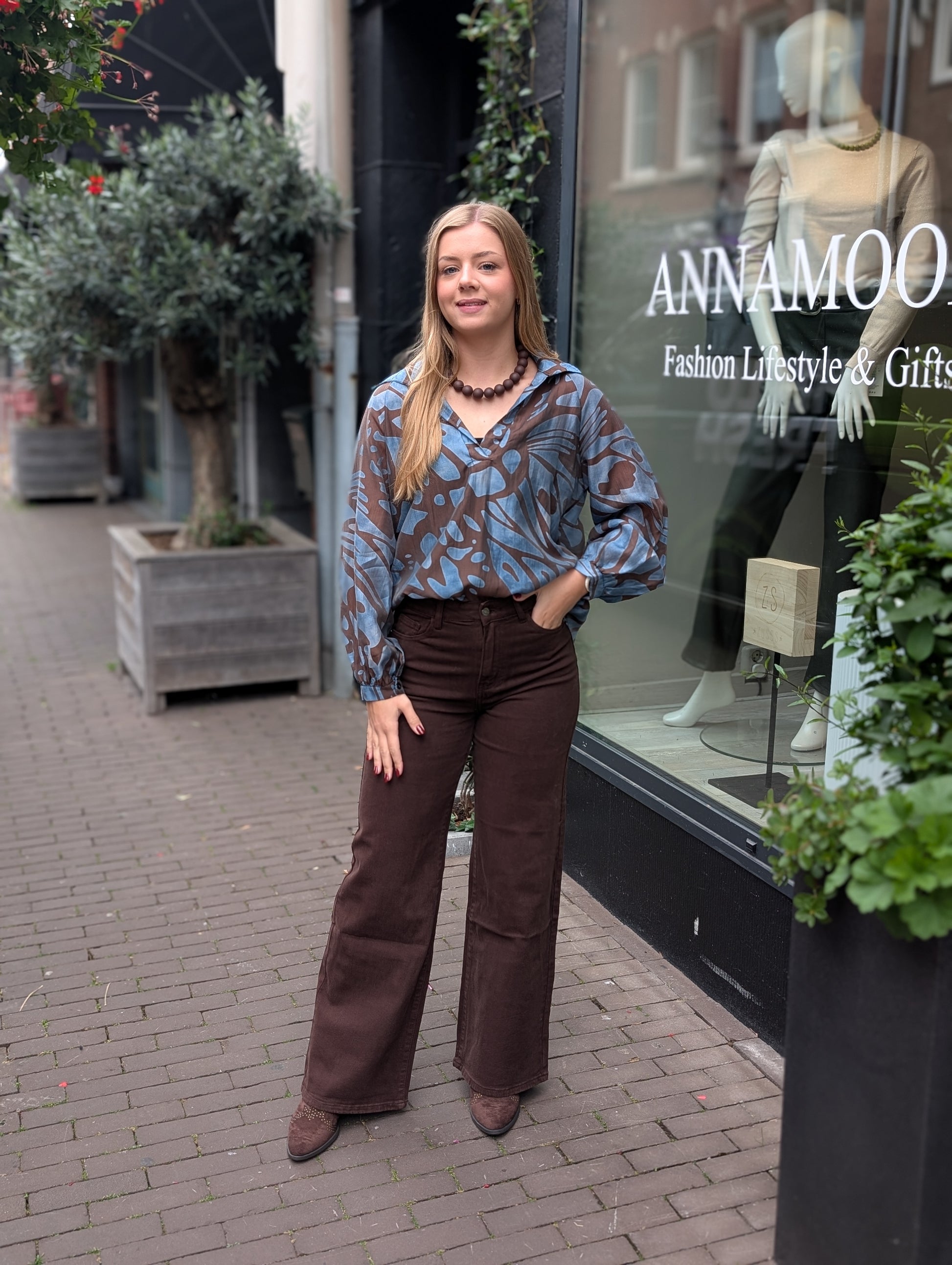 De broek heeft een mega mooie pasvorm! Zit boven aangesloten maar valt dan leuk wijder! Let op de broek bevat stretch dus wijd altijd nog uit.