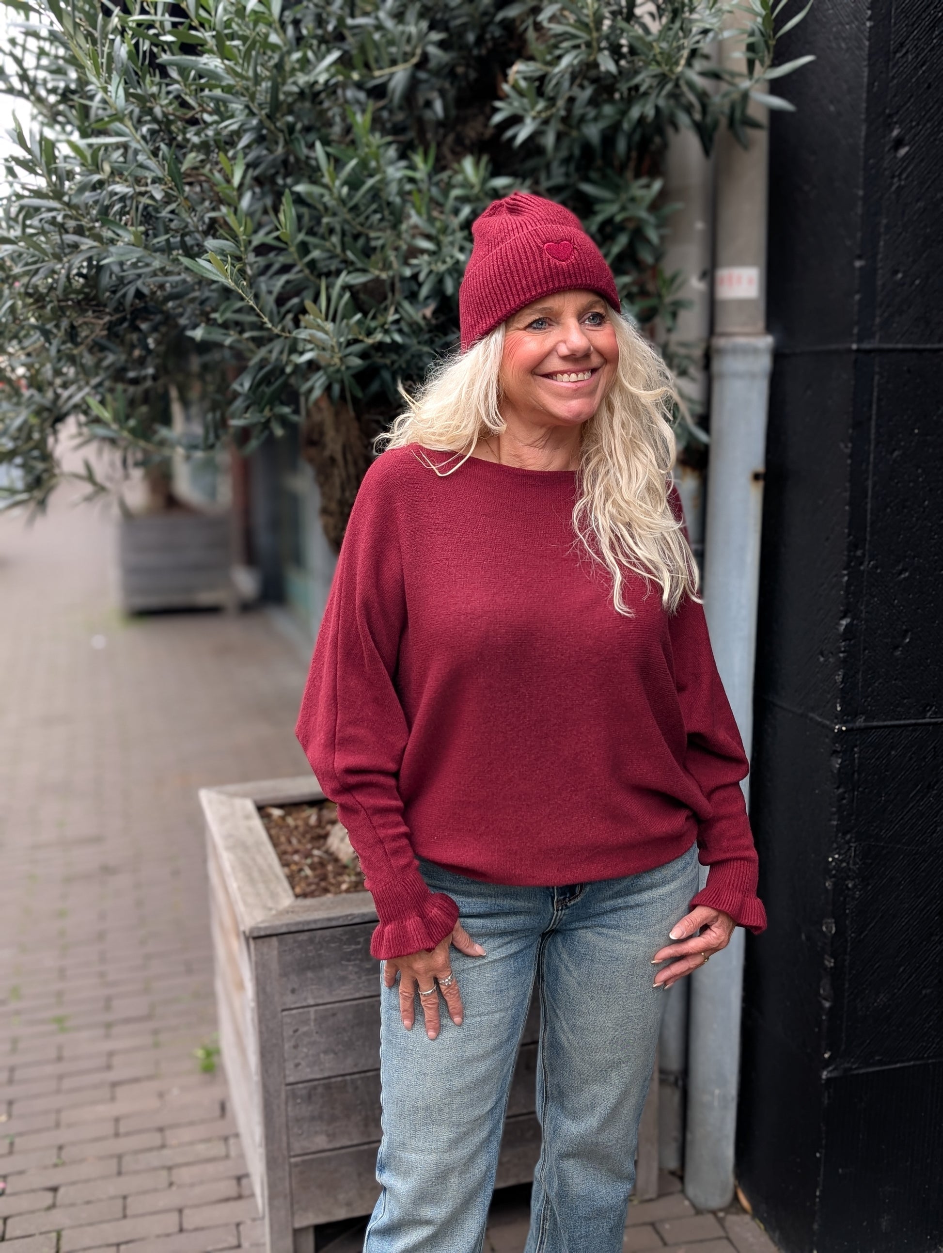 Viva vleermuis mouw trui - Bordeaux rood