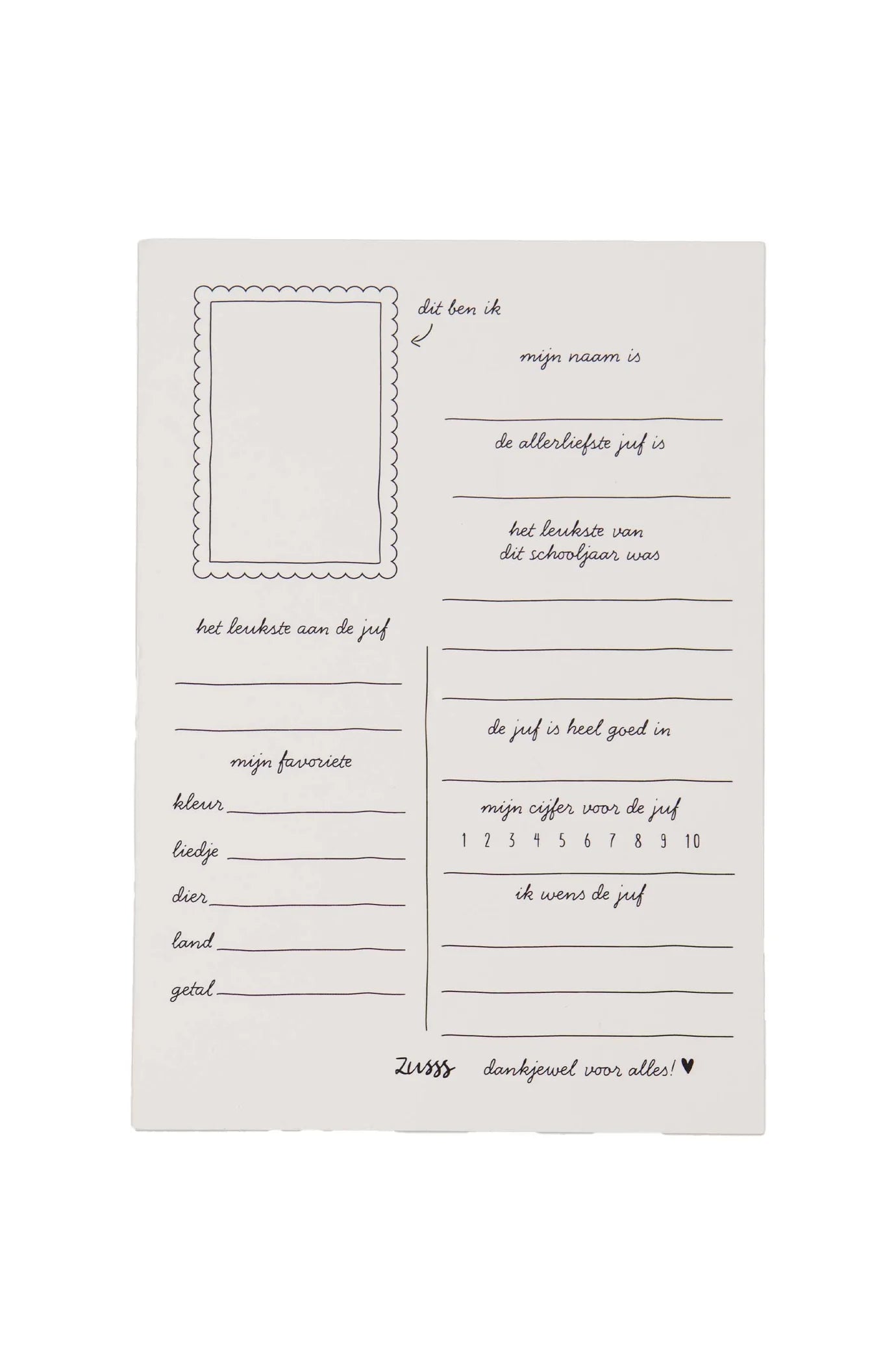 Zusss ansichtkaart armbandje liefste juf