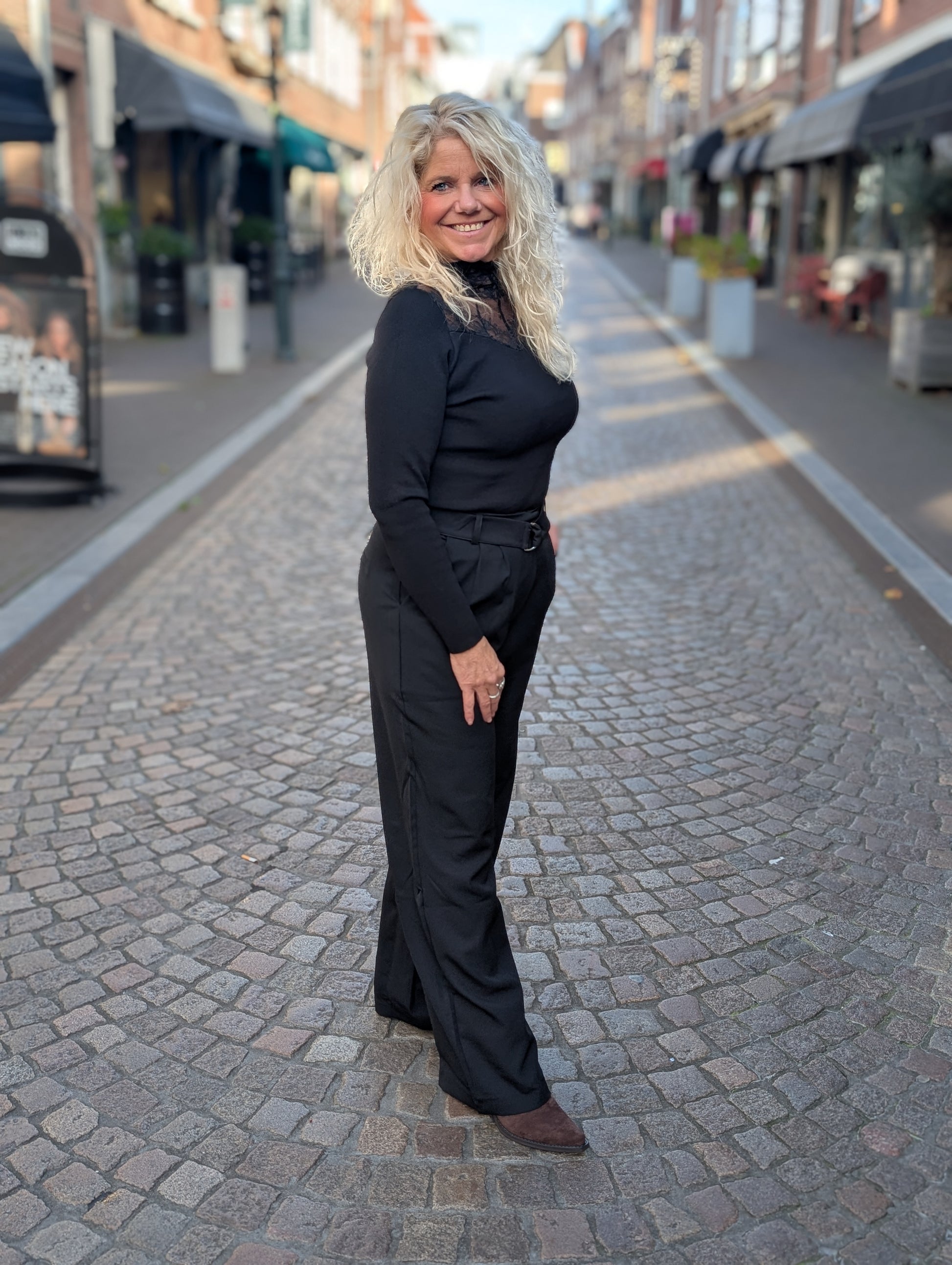Deze wijde broek met ceintuur van Zusss is een echte must-have voor wie houdt van comfort en stijl. De zwarte kleur maakt de wijde broek met ceintuur makkelijk te combineren met jouw favoriete tops. De broek valt soepel en heeft een elegante brede pijp, perfect voor een relaxte maar chique look. Door de ceintuur accentueer je subtiel je taille, wat deze wijde broek met ceintuur extra bijzonder maakt. Een veelzijdige toevoeging aan je garderobe, ideaal voor zowel werk als vrije tijd.
